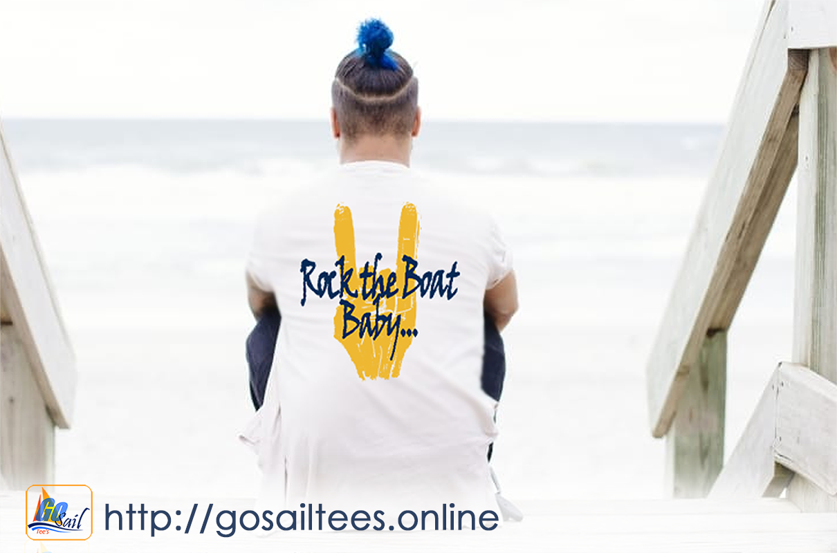 GoSailTee's original design "ROCK THE BOAT BABY..." solid white cotton t-shirt comes in a variety of sizes.